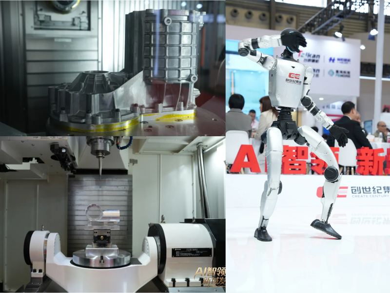 Đối với lĩnh vực robot hình người, Taikan tập trung vào giải pháp gia công các chi tiết có độ chính xác cao như khớp robot và kết cấu thân robot. Các model nổi bật được trưng bày gồm trung tâm gia công giàn 4 đầu T-6050-2 và trung tâm gia công đứng 5 trục T-320UA. Các dòng máy này cho phép gia công các chi tiết phức tạp trong một lần gá, góp phần nâng cao độ chính xác và tối ưu hiệu suất sản xuất.